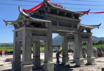 傳統(tǒng)中式園林村莊入口石雕牌坊