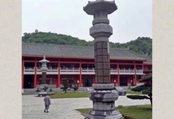 大型寺廟經幢雕塑是一種以寺廟為主題的藝術品,是集傳統文化、藝術、宗教等元素為一體的綜合性藝術品。它以傳統的寺廟建筑為背景,由經幢、佛像雕塑等組成,以表達宗教信仰和文化藝術的融合,多以精致、細膩、高雅的形象表現出來。