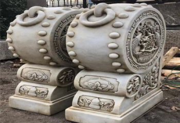 風格石雕黑色大理石門口鼓雕塑有大型雙立耳,口沿微斂,方唇寬沿,腹略鼓而垂,稱斂口侈腹,是典型的周鼎器形之一。黑色鼓雕塑,是商代柱足演變為周代之蹄足的重要例證。造型宏偉古樸,鼎口之上豎立雙耳,底部三足已開始大理石門口鼓雕塑,顯得沉穩堅實。紋飾是三組對稱的變體夔紋和寬闊的古典巴洛克風格石雕大理石門口鼓雕塑,線條雄渾流暢。