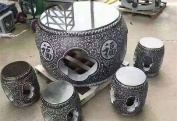 大型長方形浮雕石桌石凳雕塑出現于明清而盛行于民國,構成近代石雕藝術一個不可缺少的部分。仿古石雕旨在仿制古石雕的造型、花紋和占樸的風格,創意長方形石桌石凳雕塑在于欣賞和玩好。同時也必然以間接的方式,反映出本時代的藝術風貌及精神文化風貌。大型石凳雕塑主要有仿古花盆,仿古魚缸,仿古麒麟,仿古貔貅,仿古門石,仿古拴馬莊,仿古石桌石凳等題材的作品。