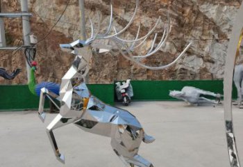 大型不銹鋼鏡面梅花鹿雕塑,美化園林景觀擺件