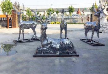 精致不銹鋼戶外雕塑,梅花鹿增添公園草坪魅力,是一款以不銹鋼材料制作的戶外雕塑,以梅花鹿為主題,表現出了細膩的質感和流暢的線條,更有著鏡面的反射讓整體顯得更加清晰、精致。