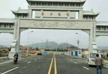 新農村單門三樓花崗石雕門樓牌坊,是一種獨特的建筑風格,來源于中國傳統的文化建筑。它采用了花崗石雕刻的門樓牌坊,在中國古代的建筑中很常見,但也有許多新的設計。