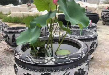 仿古庭院荷花鯉魚浮雕石雕缸雕塑