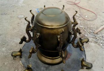 大型不銹鋼地動儀雕塑采用對稱的結構方式,展現了中華文明的過去、現在與未來。不銹鋼地動儀雕塑是蘊涵特征的數字屏,由有機玻璃制成,內置電燈。壁畫下邊用不銹鋼制成發射線圖形加以襯托,給人以神秘深邃的大型不銹鋼地動儀雕塑,凸顯特征,并烘托出當代信息化科技化的時代特點。