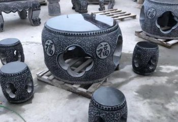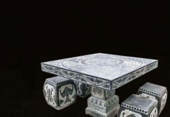 仿古風情青石浮雕庭院園林戶外石桌椅