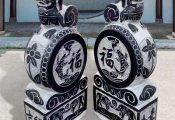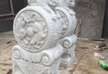 這是一件精美實用的雕塑,由一把抱著一只鼓的青石石雕塑組成,可以點綴你的庭院門口,讓它更加具有視覺沖擊力,更加具有特色。