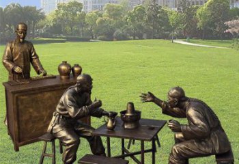 該民俗雕塑以銅雕為載體,傳承傳統雕塑工藝。創作者聚焦 “河口碼頭” 場景,刻畫三位勞動者搬運貨物的動態:有的背負糧袋爬坡、有的合力抬箱、有的借力起運,通過寫實造型與力量感姿態,還原舊時碼頭勞作風貌。從文化意義看,它是地域歷史的微縮呈現。碼頭曾是商貿、交通樞紐,勞動者群像見證往昔貨運興衰,承載當地百姓對勤勞、協作精神的推崇;銅雕材質賦予作品持久生命力,讓后代能觸摸先輩奮斗軌跡,延續對傳統行業、勞動價值的文化記憶,成為連接過去與當下的民俗文化紐帶,喚起人們對地域發展歷程與勞動精神的共情。
