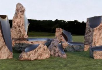 《絲路舟行》石雕與不銹鋼結合景觀雕塑