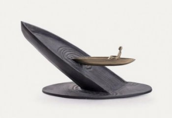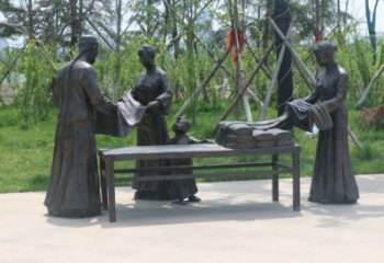 該雕塑是一件創意銅雕景觀雕塑,以逼真的人物造型呈現舊時商販形象:身著傳統服飾,腳踩拖鞋,肩挑扁擔,兩端筐內分別盛著貨物與器具,人物張口吆喝的姿態生動鮮活。從材質上,采用銅雕工藝,通過金屬的質感與做舊處理,賦予雕塑歷史厚重感,仿佛將一段市井生活凝固于街頭。作為景觀雕塑,它巧妙融入現代街道場景,與周邊建筑、行人形成對話,成為城市景觀的有機組成部分。其創意性體現在對民俗文化的藝術化提煉,以具象的商販形象為載體,將往昔市井吆喝的生活畫面轉化為可觸摸、可觀賞的藝術作品,既保留了民俗的原汁原味,又以雕塑的藝術形式實現了創意表達,讓觀者在現代都市中能直觀感受傳統市井文化的魅力,成為連接歷史與當下的文化紐帶,兼具審美價值與文化傳承意義。