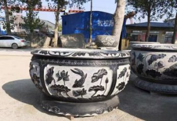 鑫特雕塑 景觀雕塑 擺件雕塑 魚缸雕塑 經典荷花石雕浮雕圓形水缸,裝點您的庭院