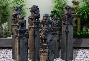 3用途分類:制作石獅子玄關裝飾擺件拴馬樁雕塑靠,是大門兩邊墻基旁的石構件。高一般在160厘米左右,寬30厘米左右,厚40厘米左右。柱頭頂端大都圓雕獅子,有的靠后還留一護板。筆者認為,裝飾擺件拴馬樁雕塑是唐代以后由拴馬樁發展演變而來的,是陜南民間一種創新,它同樣具有拴馬樁的功能,和拴馬樁同時存在。